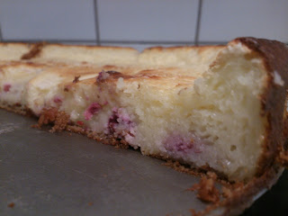 Kakan blev faktiskt väldigt saftig och god, tror det beror på kladdkakesmeten. Jag använde bara äggvita i kladdkakesmeten, ingen äggula - allt för att hålla nere energimängden. Sista tiden i ugnen täckte jag över formen med aluminiumfolie för att kakan skulle bli lagom gräddad rakt igenom, utan att för den skull bli bränd på toppen.