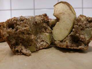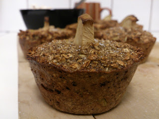 Resultatet blev en "muffins" (bilden ovan är efter halva tiden) som inte gick att få till en boatmeal pga för mycket vätska alt. kort tid i ugnen så den åts som en "kladdkaka" istället.