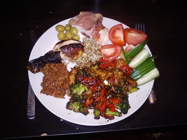 Får väl ta och posta dagens middag också. Inget att hurra för dock. En massa "left-overs" i en salig blandning. Men det gick att äta det också.